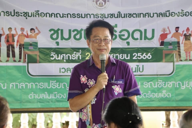 ร่วมสังเกตุการณ์การประชุมเลือกคณะกรรมการชุมชนในเขตเทศบาลเมืองร้อยเอ็ด ชุมชนศรีอุดม