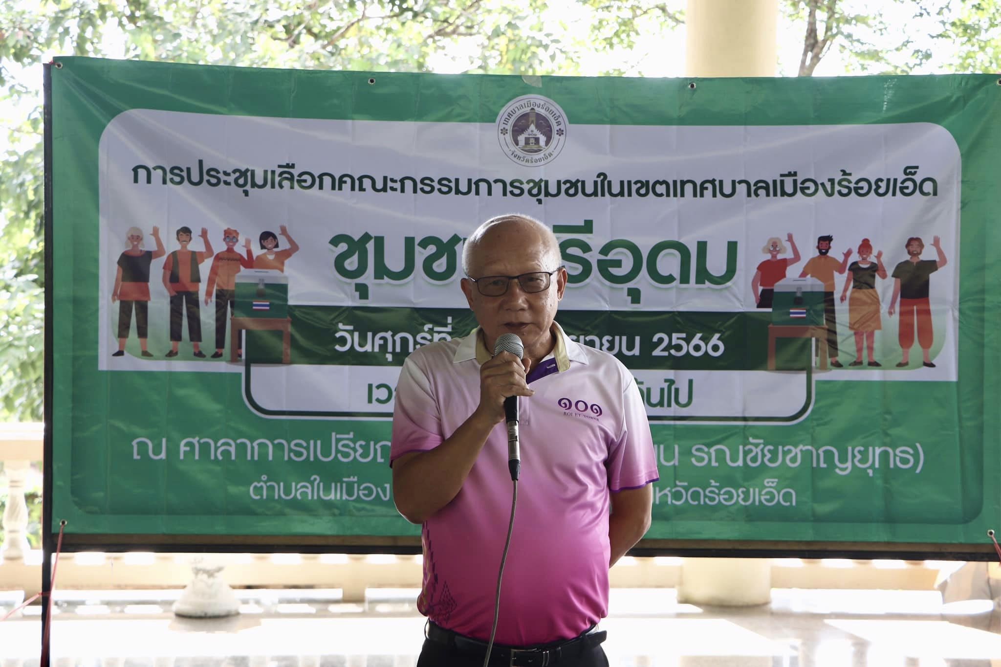 วันศุกร์ที่ 22 กันยายน 2566 เวลา 14.00 น. นายสถิตย์ ศรีสงคราม ปลัดเทศบาลเมืองร้อยเอ็ด ร่วมสังเกตุการณ์การประชุมเลือกคณะกรรมการชุมชนในเขตเทศบาลเมืองร้อยเอ็ด ชุมชนศรีอุดม โดยมี นายพีรพงศ์ จุรีมาศ สมาชิกสภาองค์การบริหารส่วนจังหวัดร้อยเอ็ด, นายชยุตม์ โอวาทกานนท์ เลขนุการนายกเทศมนตรีเมืองร้อยเอ็ด, นางศิรินธร ไกรการ สมาชิกสภาเทศบาลเมืองร้อยเอ็ด, จ.ส.อ.ทรงวุฒิ สัตบุตร รองปลัดเทศบาลเมืองร้อยเอ็ด, นายมานะ สำเภา ผู้อำนวยการกองสวัสดิการสังคม, หัวหน้าฝ่าย, หัวหน้างาน, และเจ้าหน้าที่ผู้เกี่ยวข้อง ร่วมการประชุมเลือกคณะกรรมการชุมชน ในครั้งนี้ ณ ศาลาการเปรียญวัดสาเกตนคร ชุมชนศรีอุดมเทศบาลเมืองร้อยเอ็ด