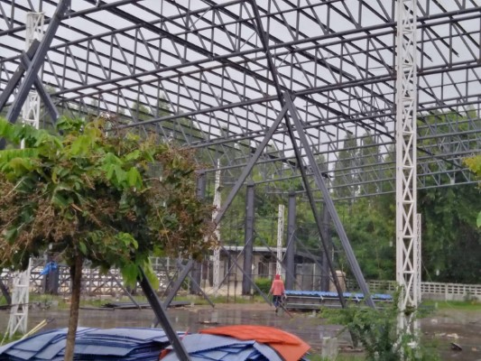 ลงพื้นที่ตรวจงานก่อสร้างหลังคาโดมสนามฟุตซอล