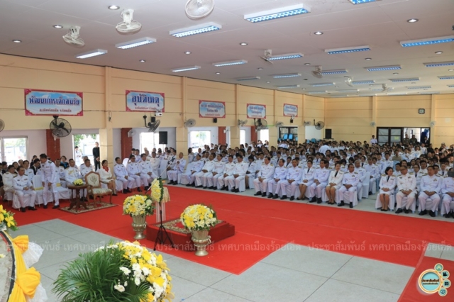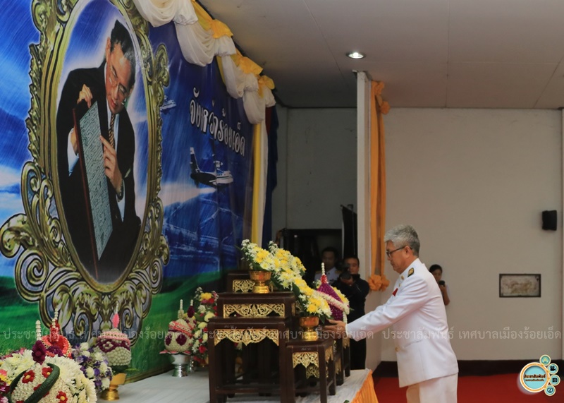 วันพุธที่ 14 พฤศจิกายน 2561 เวลา 07.00 น. ณ หอประชุมที่ว่าการอำเภอเมืองร้อยเอ็ด จังหวัดร้อยเอ็ด นายบรรจง โฆษิตจิรนันท์ นายกเทศมนตรีเมืองร้อยเอ็ด พร้อมด้วย หัวหน้าส่วนบริหารงาน, ผู้อำนวยการสถานศึกษา ครู และพนักงานในสังกัดเทศบาลเมืองร้อยเอ็ด ร่วมพิธีวางพานดอกไม้สด และถวายราชสดุดีเฉลิมพระเกียรติ พระบาทสมเด็จพระปรมินทรมหาภูมิพลอดุลยเดช บรมนาถบพิตร เนื่องในวันพระบิดาแห่งฝนหลวง ประจำปี 2561 โดยมี นายวันชัย คงเกษม ผู้ว่าราชการจังหวัดร้อยเอ็ด เป็นประธานในพิธี นำหัวหน้าส่วนราชการ, หัวหน้าหน่วยงาน และองค์กรต่างๆ วางพานพุ่มดอกไม้สดถวายสักการะ และกล่าวคำถวายราชสดุดีน้อมรำลึกถึงพระเกียรติคุณของพระองค์ที่ทรงมีพระวิสัยทัศน์อันกว้างไกล ตลอดจนพระอัจฉริยภาพ พระวิริยะอุตสาหะ ในการทุ่มเทให้กับการประดิษฐ์คิดค้น วิจัยและพัฒนา จนเกิดเป็นโครงการพระราชดำริมากมายนานัปการ รวมถึงโครงการพระราชดำริฝนหลวง อันก่อเกิดประโยชน์คุโณปการอเนกอนันต์แก่ปวงชนชาวไทย