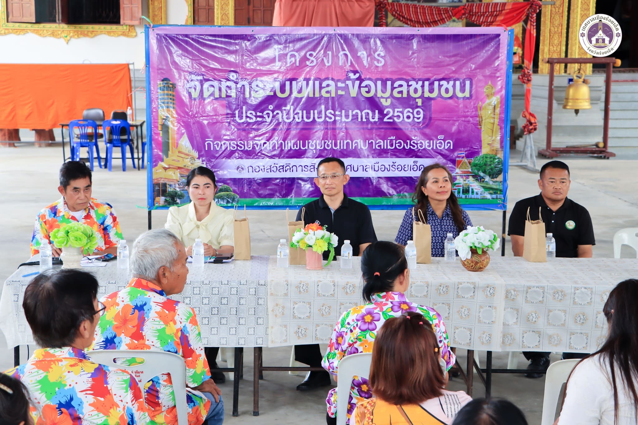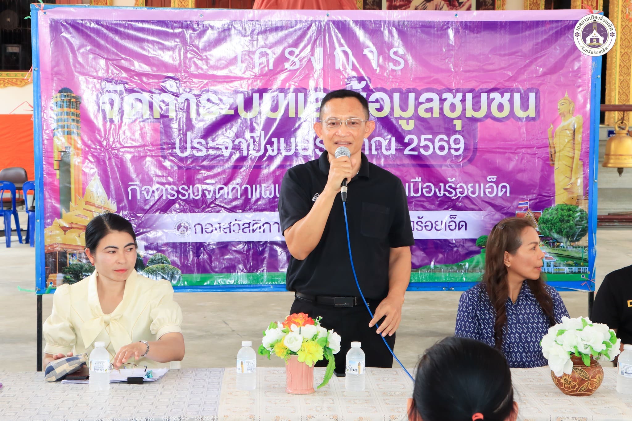 วันอังคารที่ 24 มีนาคม 2569 เวลา 13.30 น. สิบเอกฐิระวัจน์ อรรคนันท์ รองปลัดเทศบาลเมืองร้อยเอ็ด พร้อมด้วย นางประไพ กลิ่นจันทร์ ผู้อำนวยการกองสวัสดิการสังคม, นายศุภไชยวัศ ธนาเติมศักดิ์ หัวหน้าฝ่ายพัฒนาชุมชน, หัวหน้างาน, ประธานชุมชม, คณะกรรมการชุมชน, อสม., ประชาชนในชุมชน และเจ้าหน้าที่ผู้เกี่ยวข้อง ร่วมโครงการจัดทำระบบและข้อมูลชุมชน ประจำปีงบประมาณ 2569 ชุมชนราษฎรอุทิศ กิจกรรมการจัดทำแผนชุมชน ในเขตเทศบาลเมืองร้อยเอ็ด เพื่อรวบรวมปัญหาและความต้องการของประชาชน เพื่อจัดบริการสาธารณะ ตลอดจนการใช้ข้อมูลประกอบการจัดทำแผนพัฒนาชุมชนให้เป็นปัจจุบัน ณ ศูนย์สาธารณสุขมูลฐานชุมชนราษฎรอุทิศ เทศบาลเมืองร้อยเอ็ด