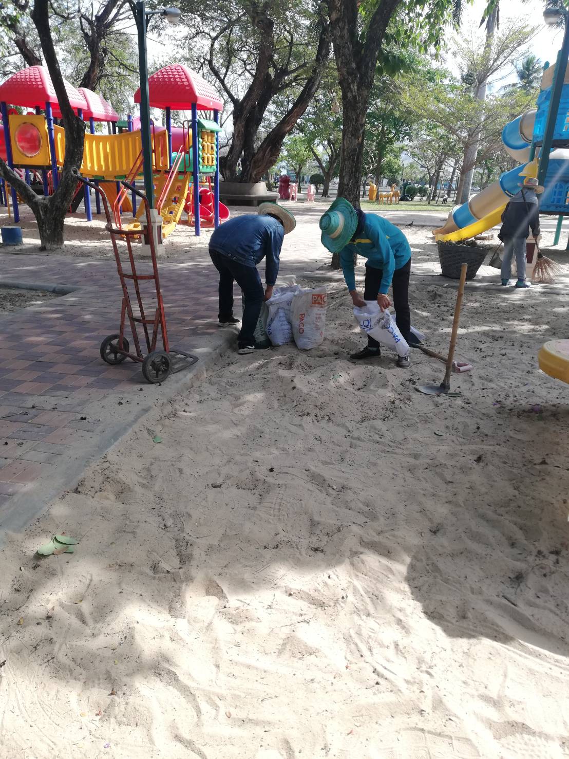 วันศุกร์ที่ 18 มกราคม 2562 เทศบาลเมืองร้อยเอ็ด โดย งานสวนสาธารณะ ฝ่ายการโยธา กองช่าง ดำเนินการตัดแต่งกิ่งไม้แห้งต้นอินทนิลบกบริเวณสนามเด็ก พร้อมกับตักทรายมาเติมพื้นที่บริเวณที่เป็นหลุม เป็นร่อง บริเวณใต้ต้นไทรพระพุทโธดม ภายในบึพลาญชัย