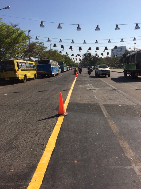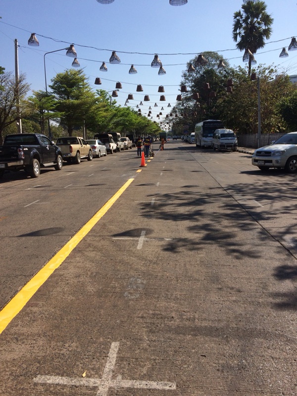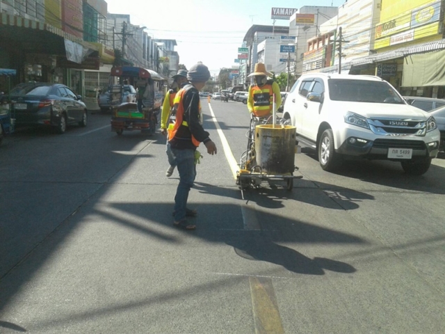เทศบาลเมืองร้อยเอ็ด ดำเนินการทาสี ตีเส้นจราจร บริเวณถนนรัชชูประการ และถนนภายในเขตเทศบาลฯ
