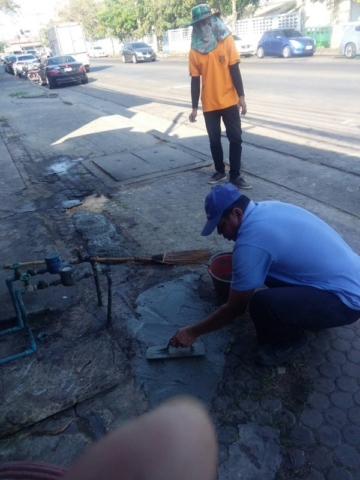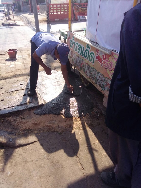 เทศบาลเมืองร้อยเอ็ด ดำเนินการซ่อมทางเท้าฟุตบาทที่ชำรุดในเขตเทศบาลเมืองร้อยเอ็ด