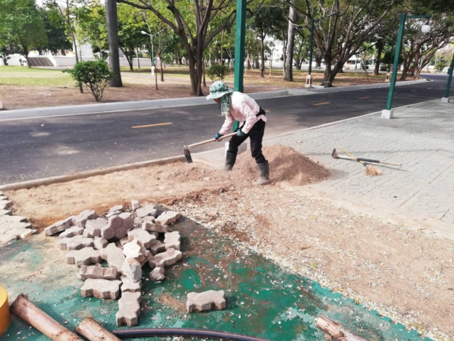 วันศุกร์ที่ 18 มกราคม 2562 เทศบาลเมืองร้อยเอ็ด โดย งานสวนสาธารณะ ฝ่ายการโยธา กองช่าง ดำเนินการปรับดินเตรียมปูตัวหนอน ข้างจุดออกกำลังกาย สะพานเกิดวรามิตร ภายในบึงพลาญชัย
