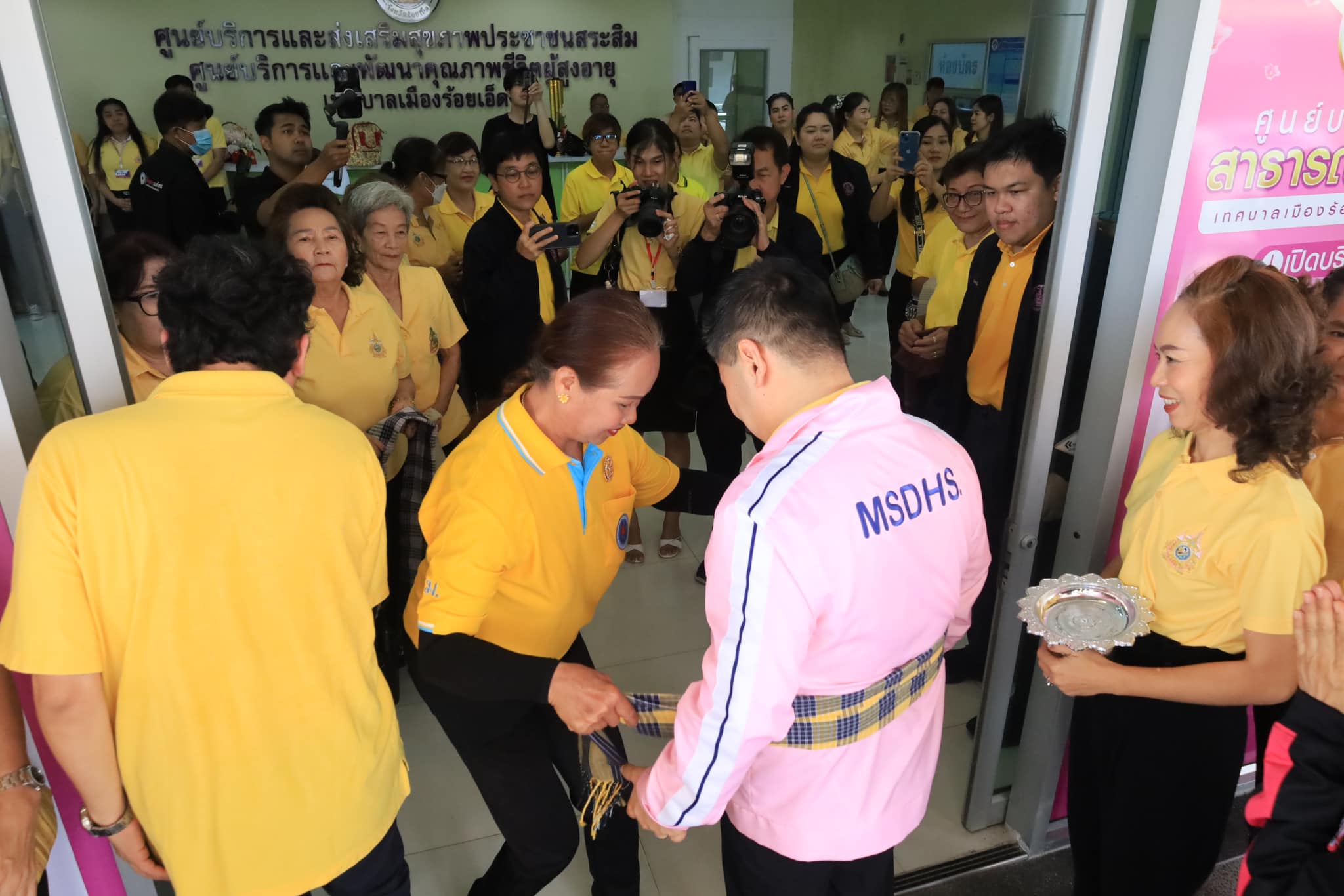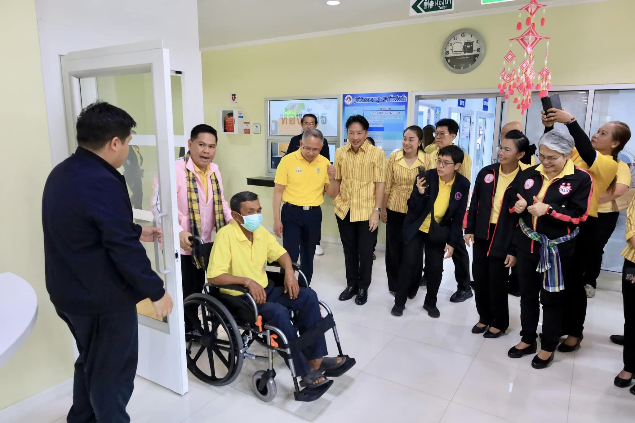 วันเสาร์ที่ 25 พฤษภาคม 2567 เวลา 09.00 น. เทศบาลเมืองร้อยเอ็ด นำโดย ดร.วัฒนพงษ์ ชิตทรงสวัสดิ์ รองนายกเทศมนตรีเมืองร้อยเอ็ด พร้อมด้วย ดร.มิตรธีรา วิสูตรานุกูล ประธานสภาเทศบาล, สมาชิกสภาเทศบาล, หัวหน้าส่วนการบริหาร, หัวหน้าฝ่าย, หัวหน้างาน และเจ้าหน้าที่ผู้เกี่ยวข้อง ร่วมให้การต้อนรับ นายวราวุธ ศิลปอาชา รัฐมนตรีว่าการกระทรวงการพัฒนาสังคมและความมั่นคงของมนุษย์ พร้อมคณะ เนื่องในการลงพื้นที่ตรวจราชการการขับเคลื่อนกิจกรรมโครงการ “เมืองต้นแบบการจัดสวัสดิการทุกช่วงวัย” ระหว่างวันที่ 25-26 พฤษภาคม 2567 ณ จังหวัดร้อยเอ็ด โดยมี นายอนุรักษ์ จุรีมาศ สมาชิกสภาผู้แทนราษฎร จังหวัดร้อยเอ็ด เขต 1 , นายชูศักดิ์ ราชบุรี รองผู้ว่าราชการจังหวัดร้อยเอ็ด นายพีระพงศ์ จุรีมาศ สมาชิกสภาองค์การบริหารส่วนจังหวัดร้อยเอ็ด หัวหน้าส่วนราชการ และหน่วยงานที่เกี่ยวข้อง ร่วมให้การต้อนรับ ด้วยจังหวัดร้อยเอ็ด ได้รับคัดเลือกจากกระทรวงการพัฒนาสังคมและความมั่นคงของมนุษย์ให้เป็น 1 ใน 9 พื้นที่จังหวัดนำร่องระดับภาคในการขับเคลื่อนกิจกรรมภายใต้โครงการ “เมืองต้นแบบการจัดสวัสดิการทุกช่วงวัย” ณ ศูนย์บริการและพัฒนาคุณภาพชีวิตผู้สูงอายุเทศบาลเมืองร้อยเอ็ด