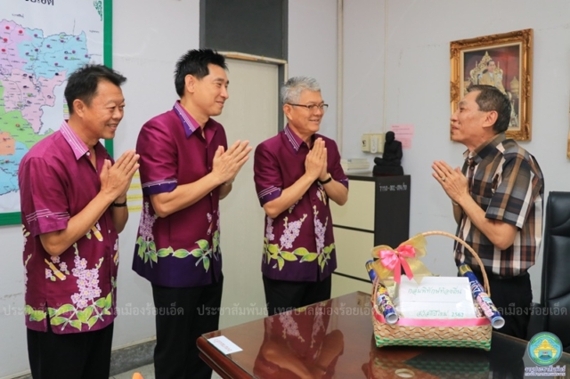 วันศุกร์ที่ 28 ธันวาคม 2561 เทศบาลเมืองร้อยเอ็ด นำโดย นายบรรจง โฆษิตจิรนันท์ นายกเทศมนตรีเมืองร้อยเอ็ด พร้อมด้วย คณะผู้บริหาร และหัวหน้าส่วนการบริหาร เข้าพบหัวหน้าส่วนราชการ เพื่อร่วมอวยพรและรับคำอวยพรเนื่องในโอกาสวันขึ้นปีใหม่ 2562