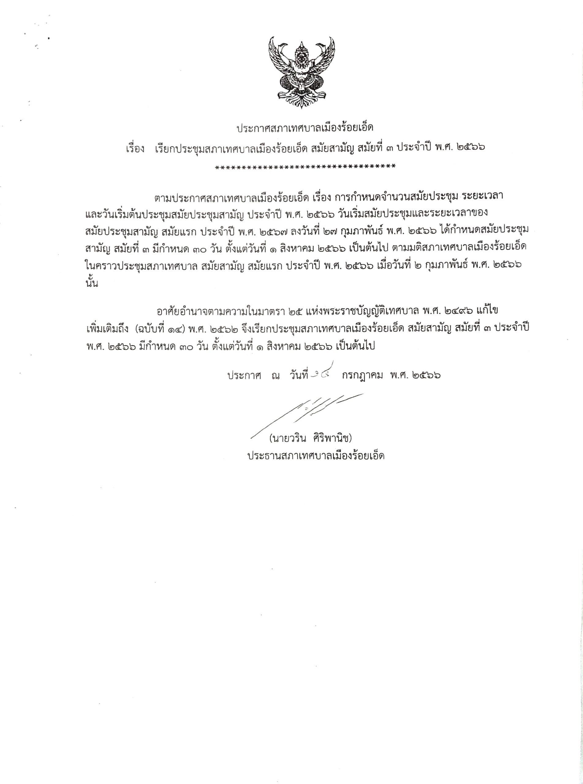 เรียกประชุมสภาเทศบาลเมืองร้อยเอ็ด สมัยสามัญ สมัยที่ 3 ประจำปี พ.ศ. 2566Published by Webmaster on 27 กรกฎาคม 202327 กรกฎาคม 2023Facebookแชร์XทวิตLINEส่งไลน์ Facebookแชร์XทวิตLINEส่งไลน์ Categories: เรียก/รายงานการประชุมสภาฯ