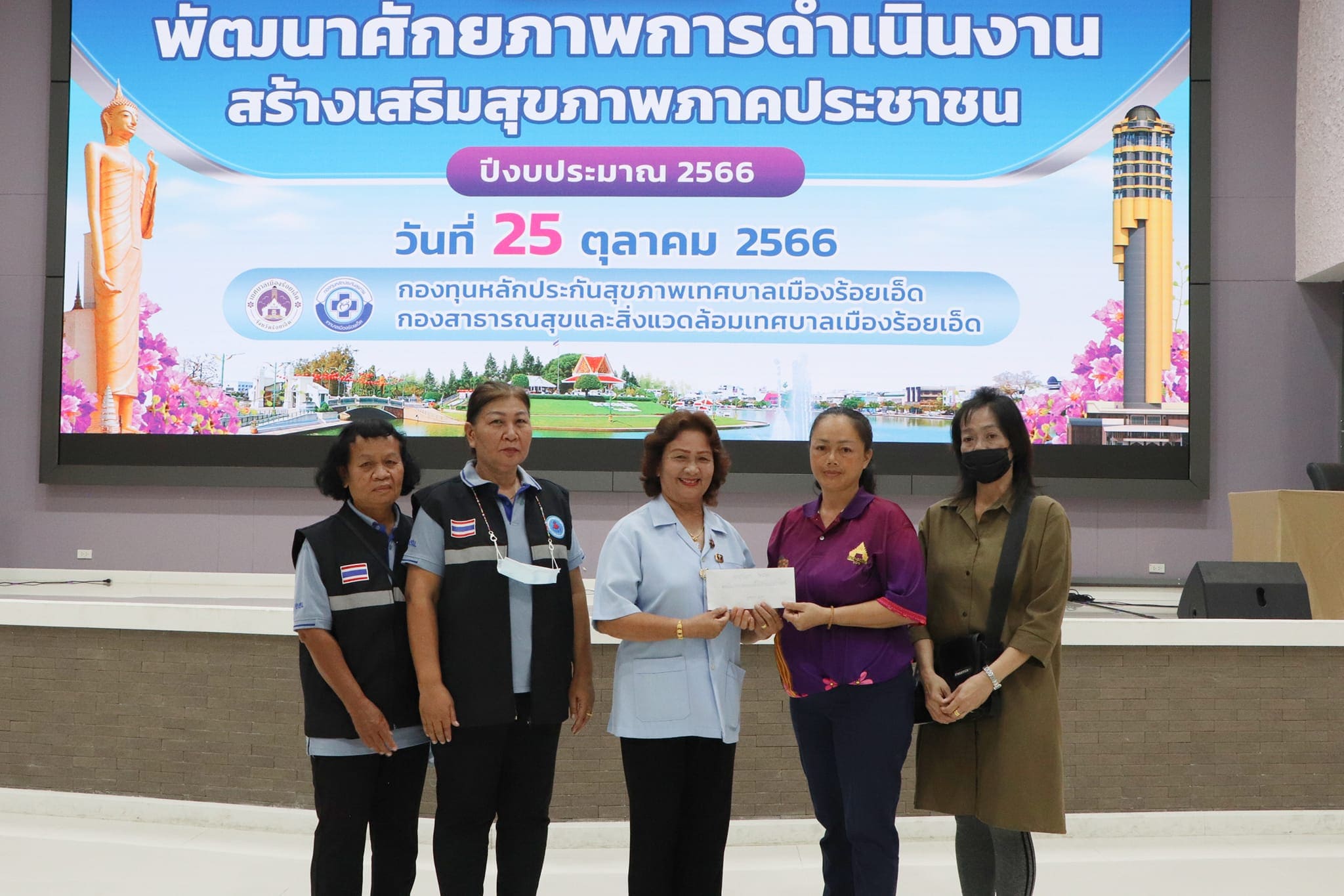วันพุธที่ 25 ตุลาคม 2566 เวลา 09.30 น. นายอำนวย อายุวัฒน์ สมาชิกสภาเทศบาล พร้อมด้วย นายพนม ชาชิโย สมาชิกสภาเทศบาล, นายนพคุณ เขตคาม สมาชิกสภาเทศบาล, ว่าที่ ร.ท. อนันต์ เมาะราษี รองปลัดเทศบาลเมืองร้อยเอ็ด, หัวหน้าส่วนการบริหาร, หัวหน้าฝ่าย, หัวหน้างาน และเจ้าหน้าที่กองสาธารณสุขและสิ่งแวดล้อม ร่วมพบปะอาสาสมัครสาธารณสุข (อสม.) เขตเทศบาลเมืองร้อยเอ็ด โครงการพัฒนาศักยภาพการดำเนินงานสร้างเสริมสุขภาพภาคประชาชน ประจำเดือนตุลาคม ปีงบประมาณ 2567 เพื่อให้อาสาสมัครสาธารณสุข (อสม.) ได้รับความรู้ เพิ่มประสบการณ์ และประสิทธิภาพในการดำเนินงานแก้ไขปัญหาสุขภาพให้กับประชาชน ซึ่งมี นายอภิรักษ์ ยังประยูร ผู้ช่วยสาธารณสุขอำเภอเมืองร้อยเอ็ด เป็นวิทยากรผู้ให้ความรู้ เรื่อง “แนวทางการดำเนินงานสำหรับอาสาสมัครสาธารณสุขเขตตำบลในเมือง เทศบาลเมืองร้อยเอ็ด ปีงบประมาณ 2567” ณ ห้องประชุมสระสิม (ชั้น1) ศูนย์บริการและพัฒนาคุณภาพชีวิตผู้สูงอายุเทศบาลเมืองร้อยเอ็ด