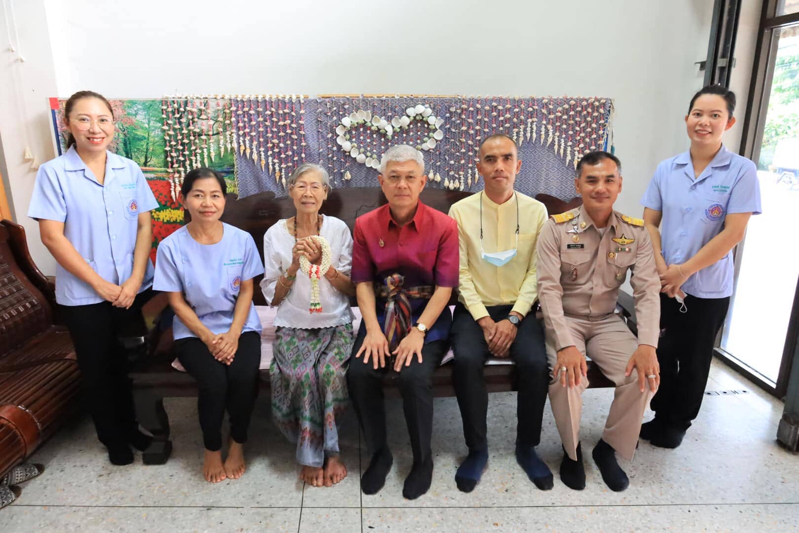 วันจันทร์ที่ 24 กรกฎาคม 2566 เวลา 09.00 น. เทศบาลเมืองร้อยเอ็ด นำโดย นายบรรจง โฆษิตจิรนันท์ นายกเทศมนตรีเมืองร้อยเอ็ด พร้อมด้วยคณะผู้บริหารเทศบาล, สมาชิกสภาองค์การบริหารส่วนจังหวัดร้อยเอ็ด, สมาชิกสภาเทศบาล, หัวหน้าส่วนการบริหาร, หัวหน้าฝ่าย, หัวหน้างาน, อสม. และพนักงานในสังกัดเทศบาลเมืองร้อยเอ็ด ออกเยี่ยมผู้สูงวัย โครงการสวัสดีประชากรอาวุโส ประจำเดือน กรกฎาคม 2566 จำนวน 1 ราย ได้แก่ คุณแม่ปรุงใจ เจริญตัน อายุ 92 ปี (ชุมชนวัดคุ้ม) ซึ่งมีวัตถุประสงค์เพื่อให้กำลังใจแก่ผู้สูงวัยในเขตเทศบาลเมืองร้อยเอ็ด ถือเป็นการดูแลทุกข์ สุข ของพี่น้องประชาชนอย่างใกล้ชิดอีกทางหนึ่ง ด้วยการดูแลตรวจสุขภาพเบื้องต้น จากทีมพยาบาลกองสาธารณสุขและสิ่งแวดล้อม เทศบาลเมืองร้อยเอ็ด มอบกระเช้าของขวัญพร้อมคำอวยพรเนื่องในวันคล้ายวันเกิดวัน