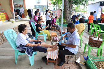วันพุธที่ 14 มิถุนายน 2566 เวลา 14.00 น. กองสาธารณสุขและสิ่งแวดล้อมเทศบาลเมืองร้อยเอ็ด นำโดย ดร.วัฒนพงษ์ ชิตทรงสวัสดิ์ รองนายกเทศมนตรีเมืองร้อยเอ็ด พร้อมด้วยนายนพคุณ เขตคาม สมาชิกสภาเทศบาลเมืองร้อยเอ็ด, นางเพ็ญละดา ภารัง กองสาธารณสุขและสิ่งแวดล้อมเทศบาลเมืองร้อยเอ็ด, หัวหน้าฝ่าย, หัวหน้างาน และเจ้าหน้าที่ผู้เกี่ยวข้อง ร่วมพบปะประชาชน “โครงการสาธารณสุขสัมพันธ์ ปีงบประมาณ 2566” โดยดำเนินงานออกหน่วยบริการตามชุมชนได้แบ่งออกเป็น 3 เขต ให้ครอบคลุมพื้นที่เขตเทศบาลเมืองร้อยเอ็ด กิจกรรมประกอบไปด้วยการตรวจโรคเบื้องต้น, ให้คำแนะนำวางแผนคุมกำเนิด, ปรึกษาปัญหาสุขภาพ, ตรวจภาวะโภชนาการ, รณรงค์การใช้ทรายกำจัดลูกน้ำยุงลาย, รณรงค์การวางยาเบื่อหนูเพื่อใช้ป้องกันโรคเลปโตสไปโรซิส(ฉี่หนู), บริการนวดคลายเครียดเพื่อสุขภาพ, บริการตัดผมชาย-หญิง และบริการซ่อมเครื่องใช้ไฟฟ้าและอิเล็กทรอนิกส์ ณ ชุมชนโรงเรียนเมืองเทศบาลเมืองร้อยเอ็ด