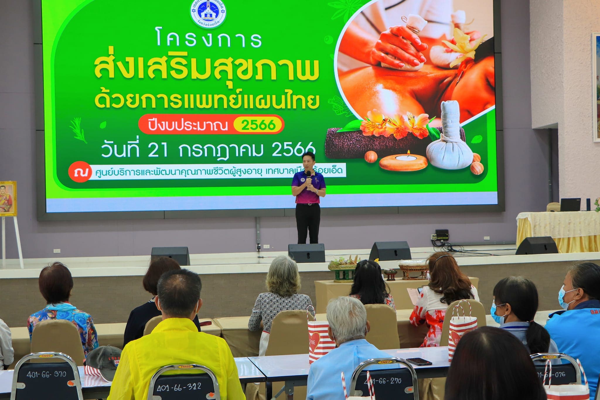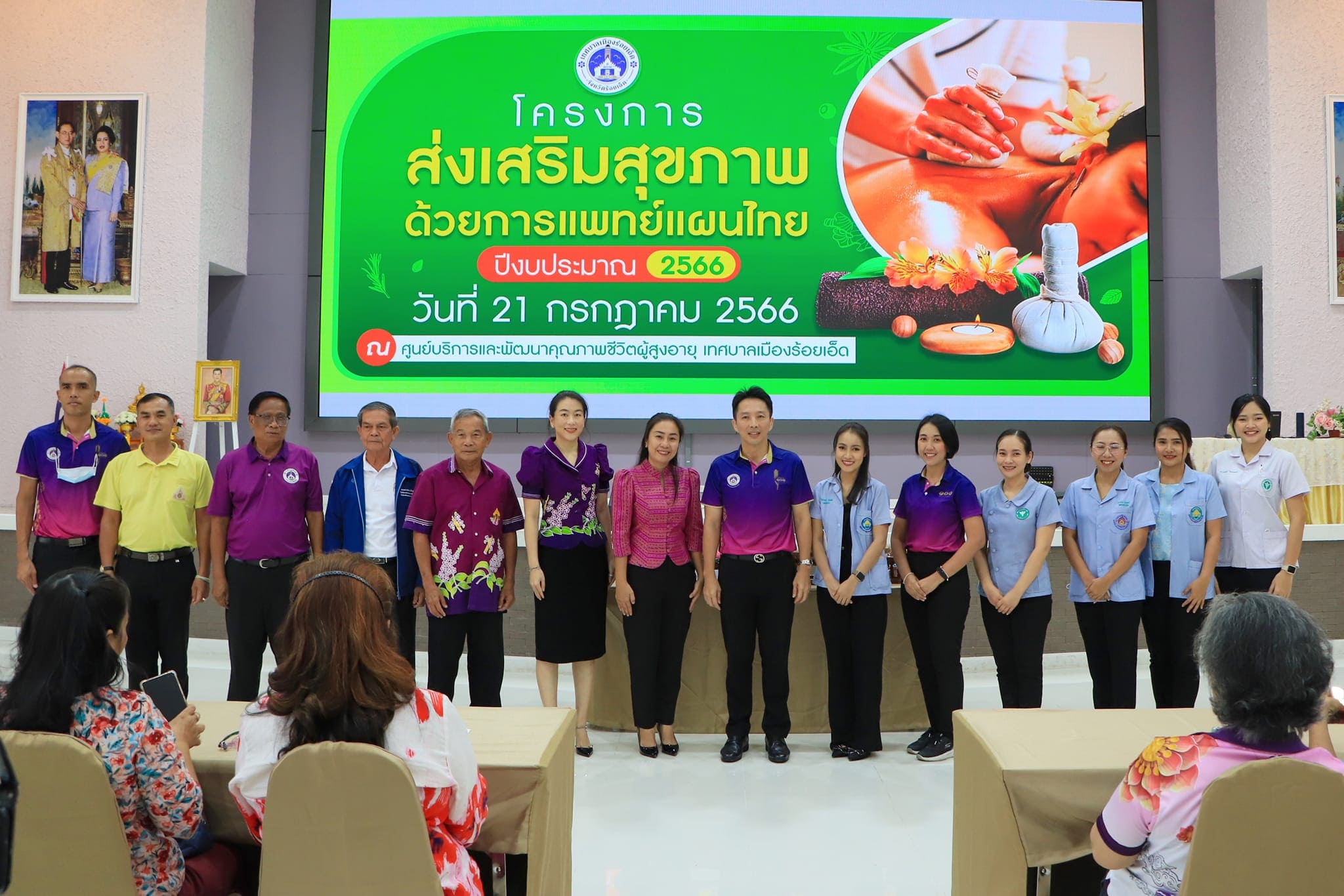 วันศุกร์ที่ 21 กรกฎาคม 2566 เวลา 09.30 น. ดร.วัฒนพงษ์ ชิตทรงสวัสดิ์ รองนายกเทศมนตรีเมืองร้อยเอ็ด เป็นประธานเปิดโครงการส่งเสริมสุขภาพด้วยการแพทย์แผนไทย ปีงบประมาณ 2566 พร้อมด้วย ดร.มิตรธีรา วิสูตรานุกูล รองประธานสภาเทศบาลเมืองร้อยเอ็ด, สมาชิกสภาเทศบาล, หัวหน้าฝ่าย, หัวหน้างาน และเจ้าหน้าที่ผู้เกี่ยวข้อง เข้าร่วมการอบรม ในครั้งนี้ ซึ่งมี คณะวิทยากรจากโรงพยาบาลร้อยเอ็ด เป็นผู้บรรยายให้ความรู้ ณ ห้องประชุมสระสิม (ชั้น1) ศูนย์บริการและพัฒนาคุณภาพชีวิตผู้สูงอายุเทศบาลเมืองร้อยเอ็ด