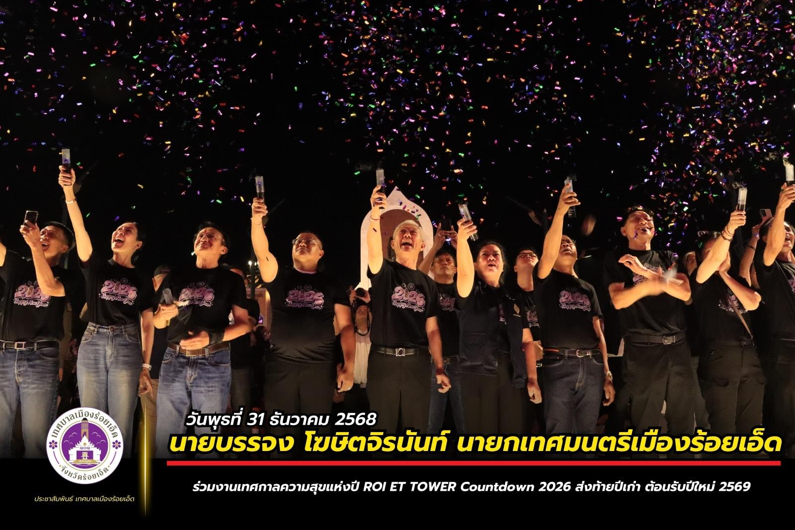 วันพุธที่ 31 ธันวาคม 2568 เวลา 20.00 – 23.59 น. จังหวัดร้อยเอ็ด ร่วมกับ องค์การบริหารส่วนจังหวัดร้อยเอ็ด และเทศบาลเมืองร้อยเอ็ด จัดงานเทศกาลความสุขแห่งปี ROI ET TOWER Countdown 2026 ส่งท้ายปีเก่า ต้อนรับปีใหม่ 2569 นำโดย นายชัชวาลย์ เบญจสิริวงศ์ ผู้ว่าราชการจังหวัดร้อยเอ็ด พร้อมด้วย นายเศกสิทธิ์ ไวนิยมพงศ์ นายกองค์การบริหารส่วนจังหวัดร้อยเอ็ด นายบรรจง โฆษิตจิรนันท์ นายกเทศมนตรีเมืองร้อยเอ็ด คณะผู้บริหารเทศบาล หัวหน้าส่วนราชการ หัวหน้าส่วนการบริหาร ตลอดจนประชาชนชาวจังหวัดร้อยเอ็ด และจังหวัดใกล้เคียง เตรียมพร้อมนับถอยหลังเข้าสู่ปีใหม่ 2569 พร้อมกัน ร่วมรับชมการแสดงดนตรีจากศิลปิน หลิว อาจารียา เบียร์ พร้อมพงษ์ และชมพลุความยาวกว่า 4 นาที ณ ลานสาเกตนคร สวนสมเด็จพระศรีนครินทร์ร้อยเอ็ด
