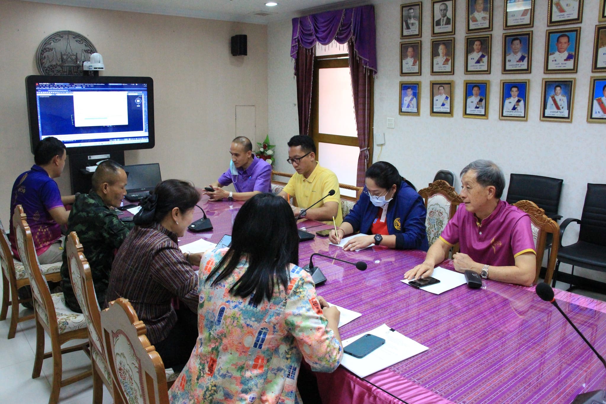 การประชุมหารือร่วมกับหน่วยงานที่เกี่ยวข้องเรื่องการจัดวางแผนผังพื้นที่การเตรียมรับเสด็จพิธีวางศิลาฤกษ์อาคารสำนักงานเหล่ากาชาดจังหวัดร้อยเอ็ด