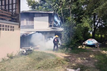 ทำลายแหล่งเพาะพันธุ์ลูกน้ำยุงลายในชุมชน ณ ชุมชน บ.ข.ส. เทศบาลเมืองร้อยเอ็ด