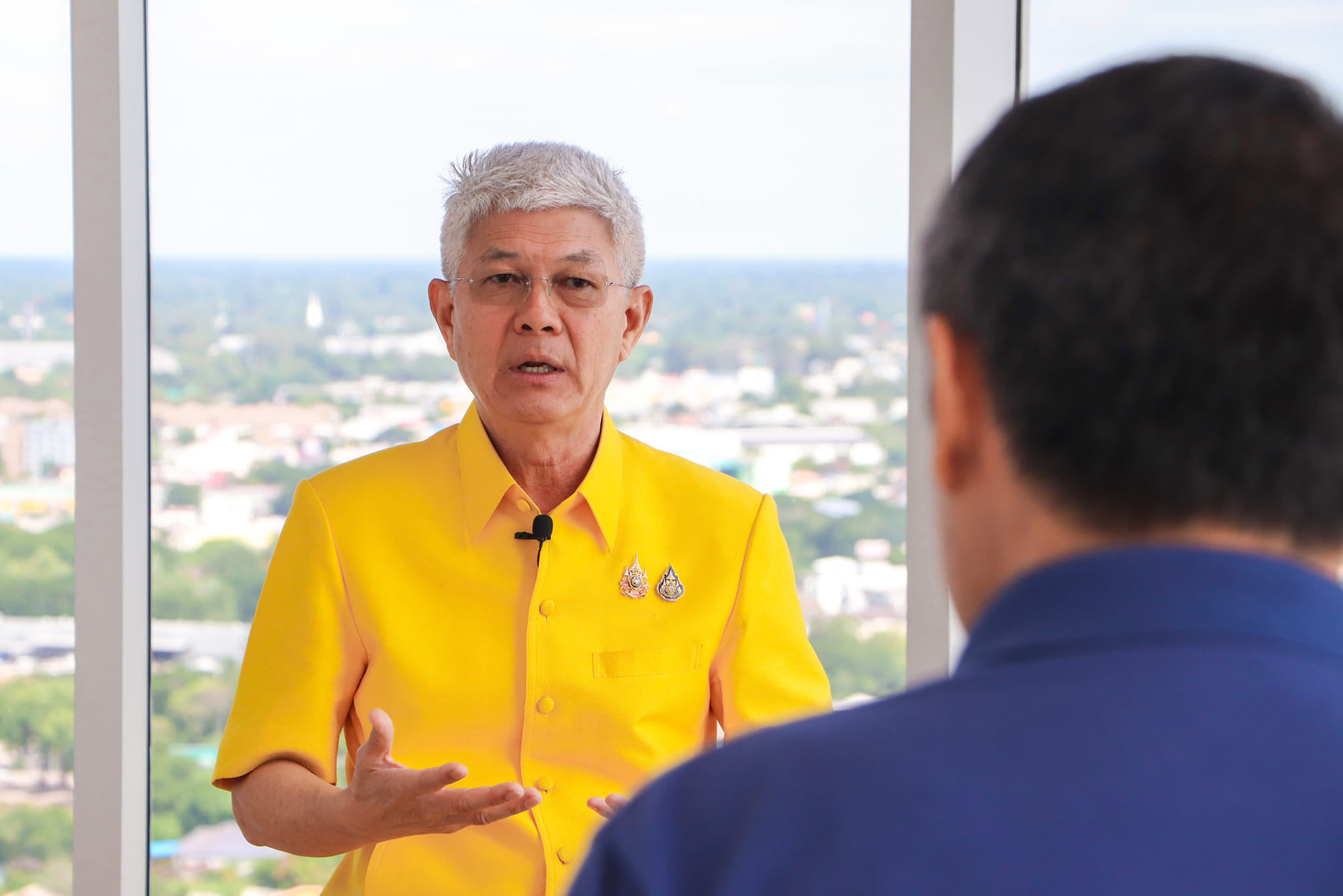 นายกเทศมนตรีเมืองร้อยเอ็ด วมให้สัมภาษณ์กับสำนักงานกองทุนสนับสนุนการสร้างเสริมสุขภาพ ( สสส. ) ประเด็นสุขภาวะชุมชนเมืองเกินร้อย