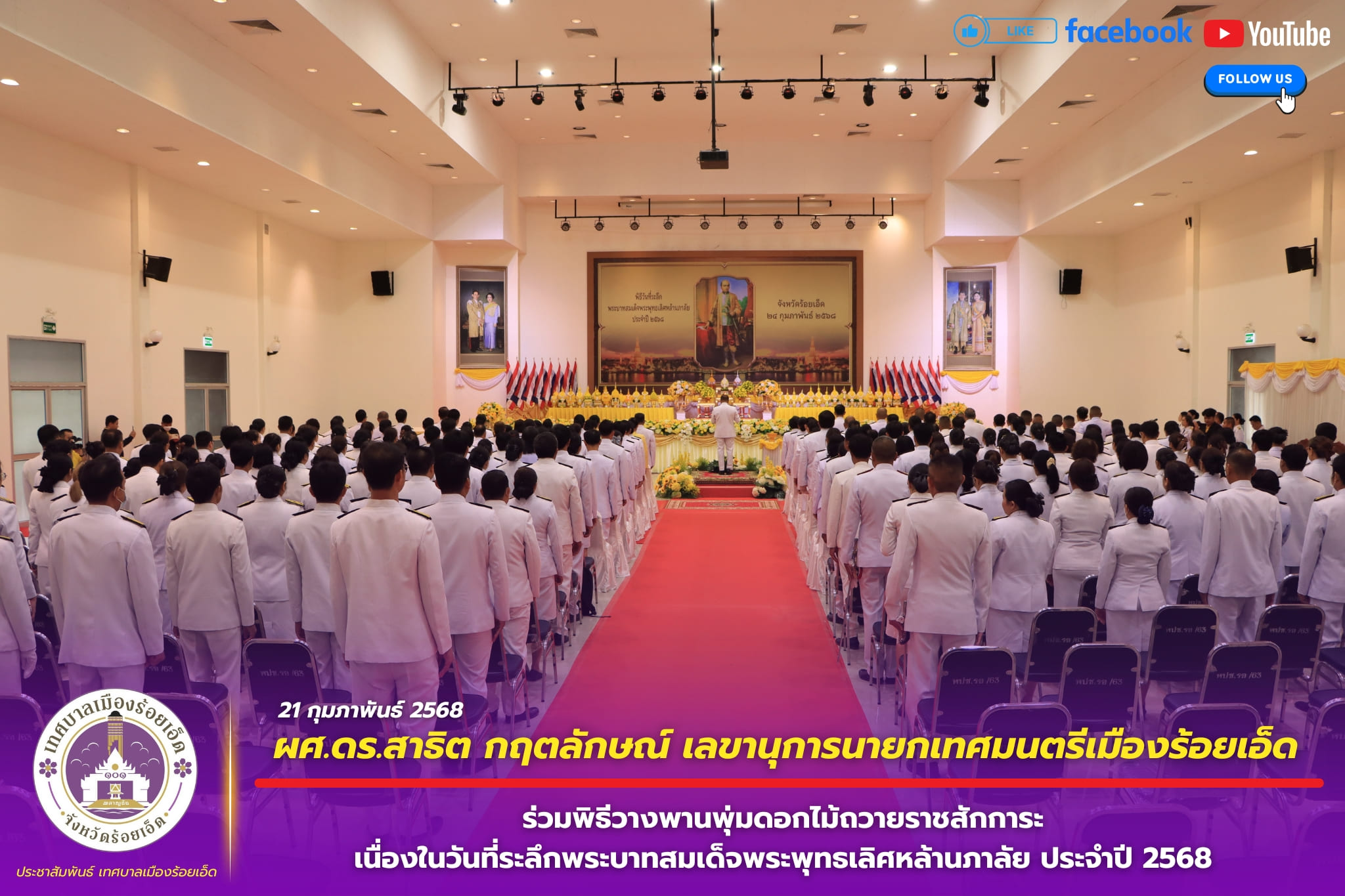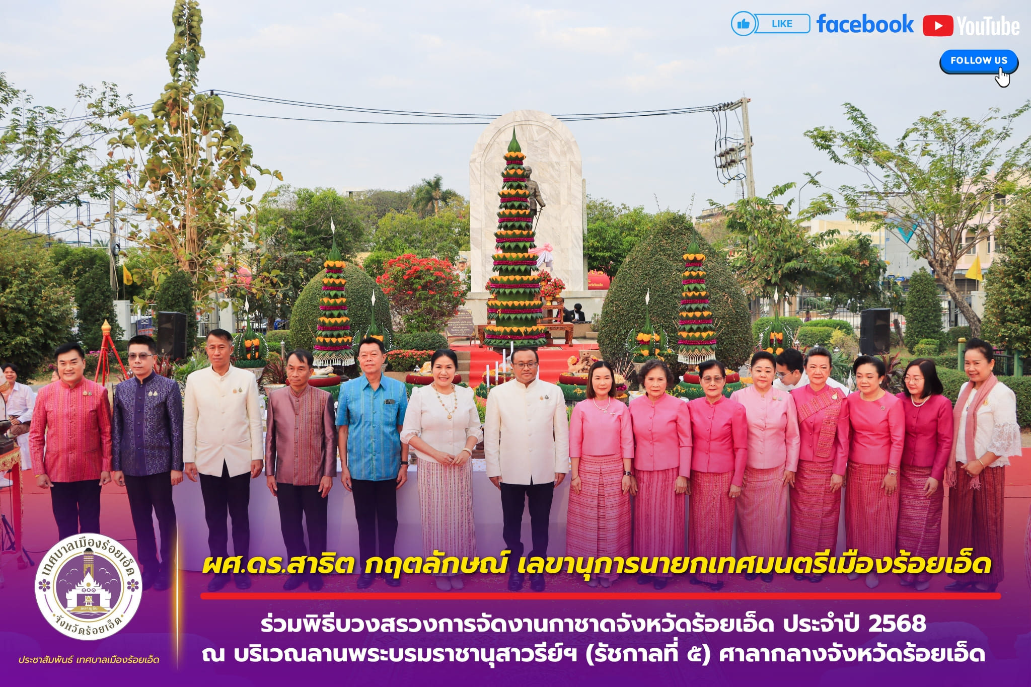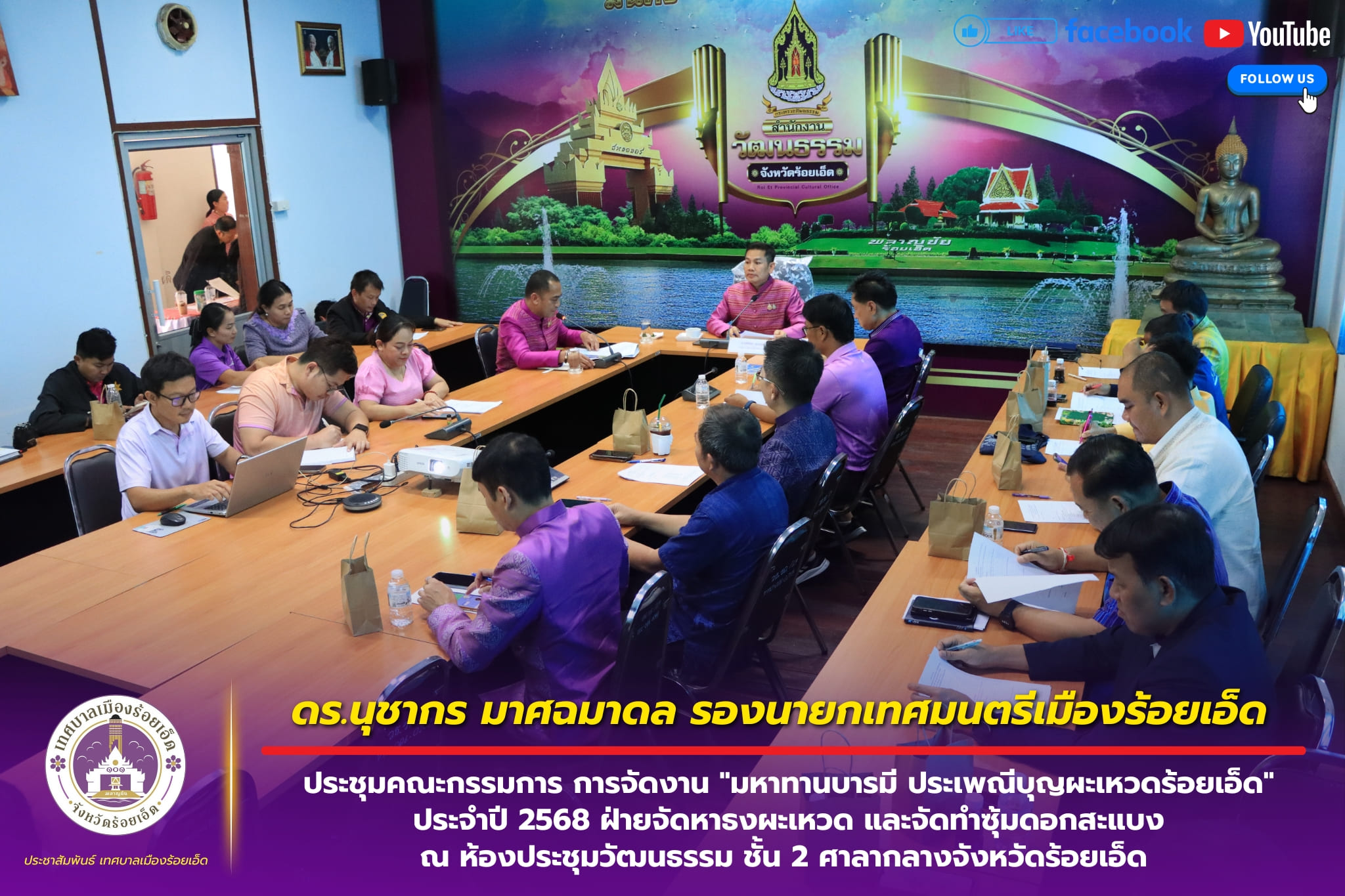 เลขานุการนายกเทศมนตรีเมืองร้อยเอ็ดและประธานสภาวัฒนธรรมจังหวัดร้อยเอ็ด ร่วมเป็นกรรมการตัดสินการประกวดธงผะเหวดในงาน “มหาทานบารมี ประเพณีบุญผะเหวดร้อยเอ็ด” ( ปีที่ 35 ) ประจำปี 2568 ณ บริเวณศาลหลักเมือง สวนสมเด็จพระศรีนครินทร์ร้อยเอ็ด