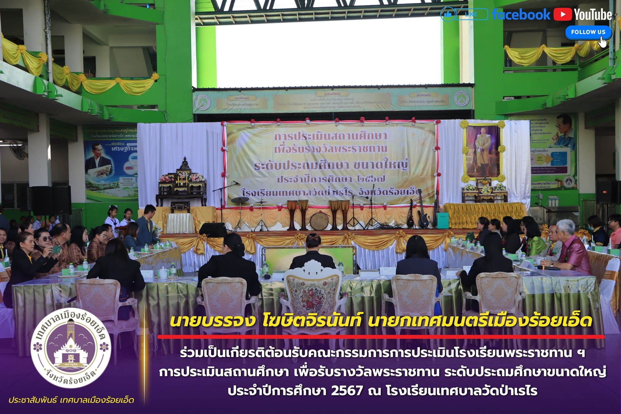 นายกเทศมนตรีเมืองร้อยเอ็ด ร่วมเป็นเกียรติต้อนรับคณะกรรมการการประเมินโรงเรียนพระราชทาน ฯ (ระดับประถมศึกษาขนาดใหญ่) รอบระดับจังหวัด ณ โรงเรียนเทศบาลวัดป่าเรไร