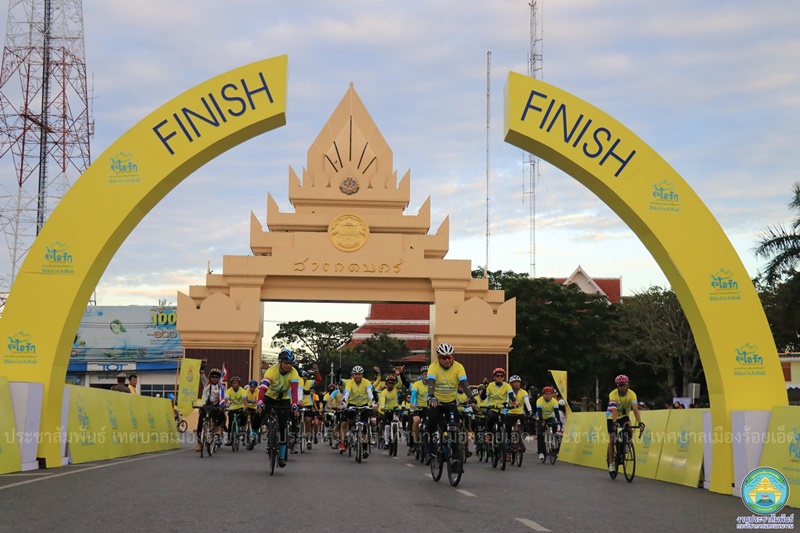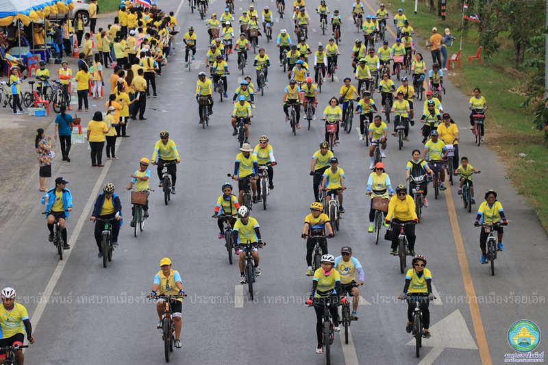 วันอาทิตย์ที่ 9 ธันวาคม 2561 เวลา 15.00 น. ณ ลานสาเกตนคร สวนสมเด็จพระศรีนครินทร์ร้อยเอ็ด เทศบาลเมืองร้อยเอ็ด นำโดย นายเรืองรัตน์ รัตนโภคาสถิต รองนายกเทศมนตรีเมืองร้อยเอ็ด พร้อมด้วย พนักงานในสังกัดเทศบาลเมืองร้อยเอ็ด เข้าร่วมกิจกรรมปั่นจักรยาน “Bike อุ่นไอรัก” คลายความหนาว สายน้ำแห่งรัตนโกสินทร์ โดยมี นายวันชัย คงเกษม ผู้ว่าราชการจังหวัดร้อยเอ็ด เป็นประธานในพิธี และร่วมนำขบวนประชาชนร่วมปั่นจักรยาน โดยจังหวัดร้อยเอ็ดมีผู้ลงทะเบียนเข้าร่วมกิจกรรมกว่า 10,000 คน สวมใส่เสื้อพระราชทานสีเหลืองฟ้า พร้อมนำรถจักรยานเข้าร่วมปั่น ออกจากจุดสตาร์ทบริเวณลานสาเกตนครไปโดยรอบตัวเมืองร้อยเอ็ด และวนกลับมายังจุดสตาร์ท รวมระยะทาง 29.101 กิโลเมตร