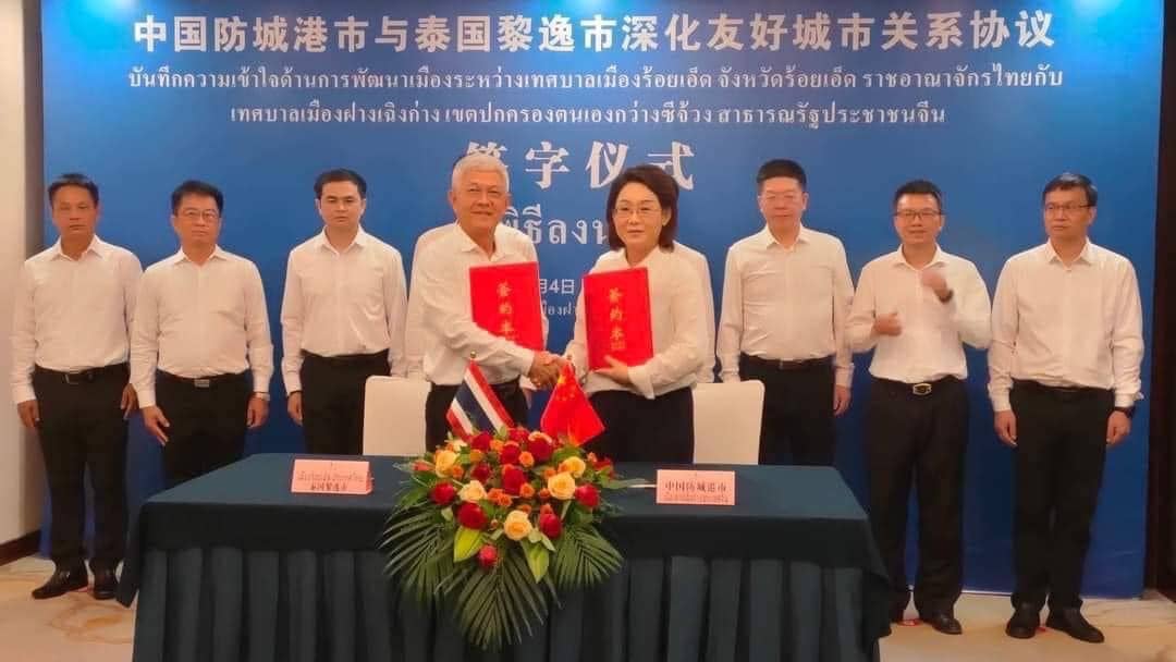 พิธีลงนามความร่วมมือ(MOU) “พัฒนาการศึกษา เศรษฐกิจและวัฒนธรรม แบบยั่งยืน” ระหว่าง เทศบาลเมืองร้อยเอ็ด กับ เทศบาลเมืองฝางเฉิงก่าง ณ เทศบาลเมืองฝางเฉิงก่าง สาธารณรัฐประชาชนจีน